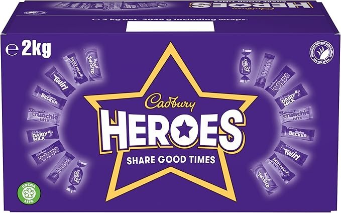 - CADBURY CLASSICS: Indulge in a 2kg bulk share box of Cadbury Heroes perfect for gifting, sharing or enjoying on your own